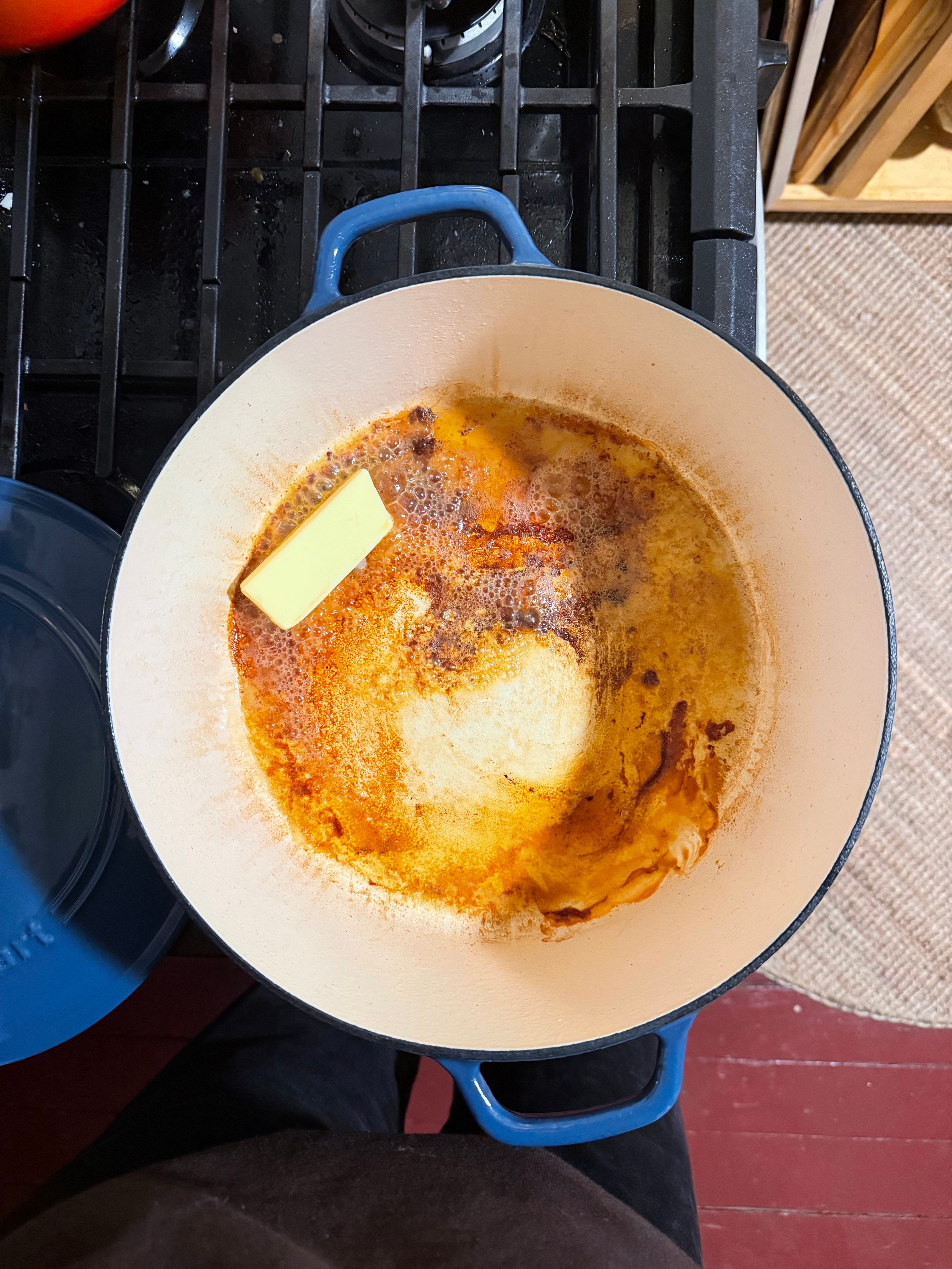 Add the garlic, hot sauce, Worcestershire sauce and bouillon, stirring occasionally until the garlic softens, about 3 minutes. Add your broth and roasted kabocha squash to the pot and bring to a simmer.