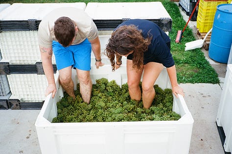 Folklor is a small operation that will sometimes utilize an ancient and rudimentary wine making technique— grape stomping. That’s the official term for stepping on wine grapes, yes with your bare feet, to release their juices, offering a gentler press. I did in fact make 69 jokes about putting the content behind a paywall and “really putting your foot into this wine” but graciously, everyone was a good sport about it.