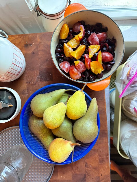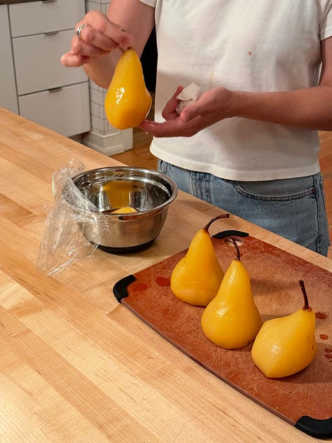 There was more than one cobbler, an easy vehicle to showcase the abundant berries and stone fruit. There were innumerable tomato salads, of course — some dressed with stracciatella & good olive oil or a couple glugs of fish sauce with lime. Sarah poached Bosc pears and I made two invisible pear cakes. My mom came to town and we made pasta from scratch with two sauces. It seems like I’ve finally learned that my aching heart just simply yearns for a home cooked meal.
