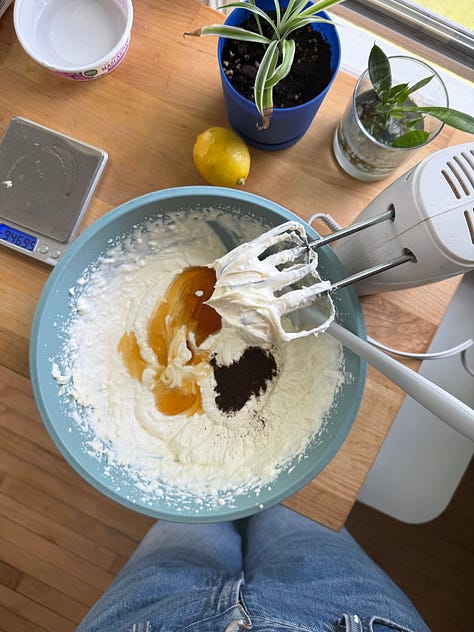 switch to whisk attachment, add heavy cream and beat until fluffy (don’t overmix - the mascarpone can curdle)