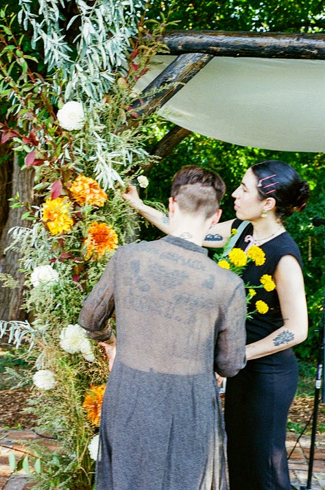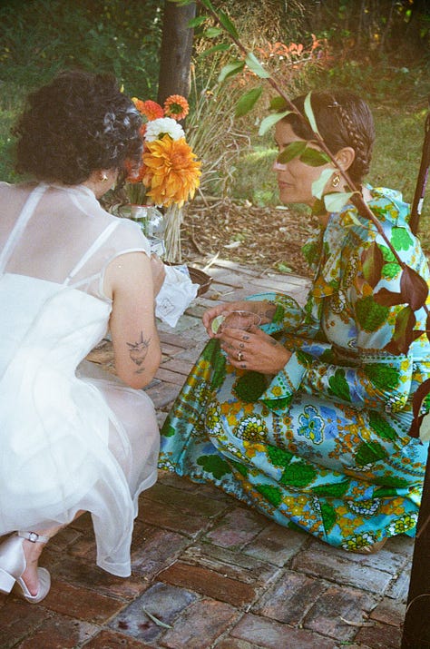 I’ve been to many weddings in many different capacities in my life — as a guest, a bridesmaid, a bride, a photographer, a caterer, a server. In the past, I’ve felt pangs of hopelessness or dismay over the performance & capitalism of it all. But Melissa’s wedding filled me with nothing but love. Love for my friend and the love that she has found, love for the group of people who all showed up to celebrate that love, love for the dedication of her work to put on this ephemeral event so we could all bask in the rays of their love.